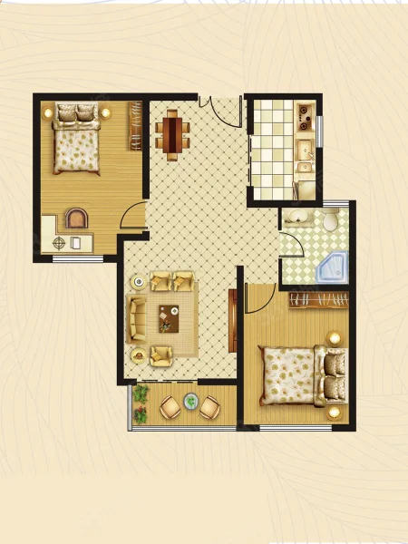 2 室 2 厅 1 卫