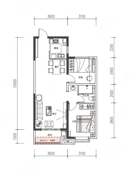 2 室 2 厅 1 卫