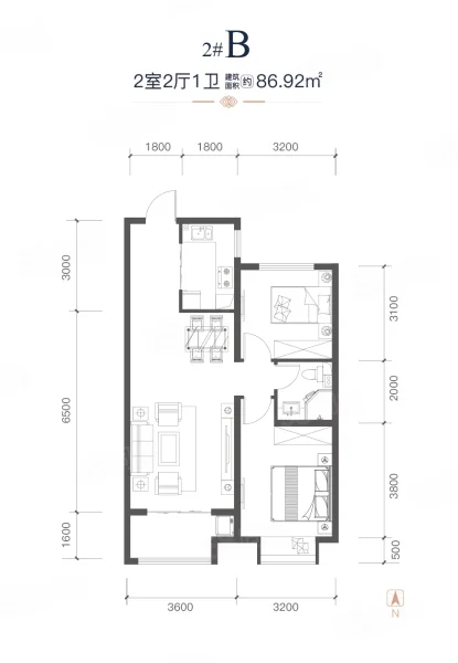 2 室 2 厅 1 卫