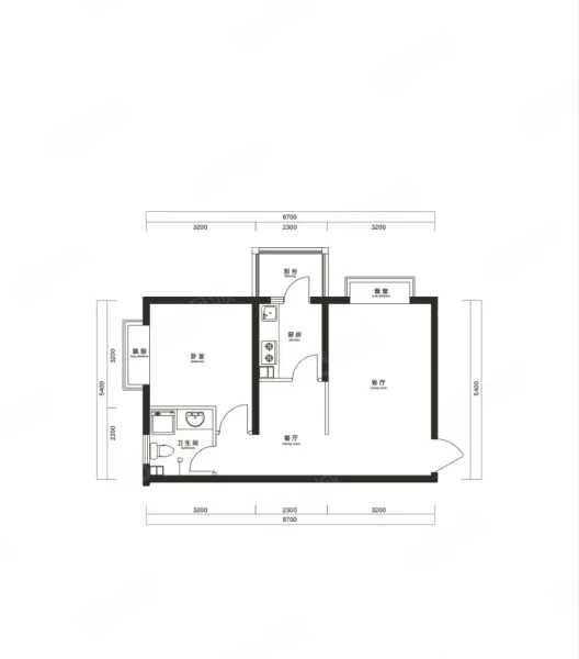 2 室 1 厅 1 卫