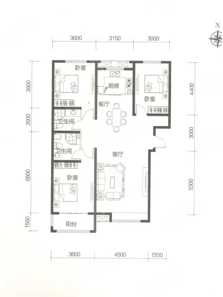 3 室 2 厅 1 卫